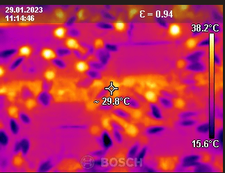 Dåligt isolerade kupor: Har man tunna träväggar kommer en del värme att slippa ut och man kan få en värmebild som ovan.