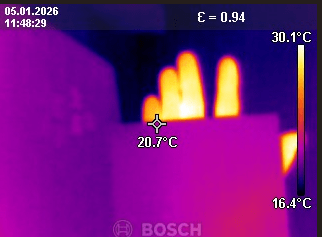 Det var lite soligt när vi tog bilden och därför blir det någon grad varmare där solen ligger på – det ser man till vänster där en trälåda är lika varm som kupan. Solen är en förklaring till dessa bilder som florerar men det finns två ytterligare förklaring;