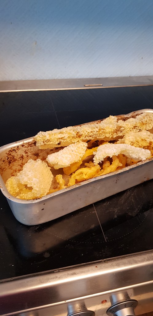 Här ska jag beskriva hur vi gör för att smälta vaxet från vaxsmältaren och täckvax till vaxblock som man kan lämna in till biredskapsaffären.