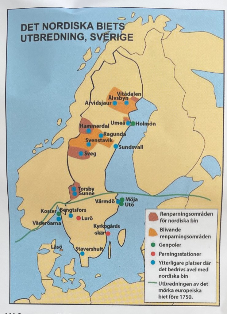 In one of our hives we found several queen cells and we concluded that it most likely were a silent change of the queen and we let them carry on with it but we took a couple of the queen cells and made nuc’s. We also had a colony with a bit aggressive bees where we removed the old queen two weeks ago and the plan was to keep them occupied with a new queen while we wait for our new black queens. We would then cage her and once they arrive split the hive into two good colonies for the new black queens. When we checked the combs we indeed found a new queen but she was already egg laying which appears to be impossible since it was only two weeks since we removed the queen. The only possible solution is that they had already made a parallellqueen, which explain why we only saw one queen cell despite the many newly laid eggs, and that the bees planned to carry out a silent change also here. Now we have a new challenge – in fact we have two: Usually we don’t keep lines that produces aggressive bees but this line is mite resistant and they seem much more calm already. Secondly, where to put our new two black queens? We will see how we solve this predicament, even if it is a rather positive problem.
