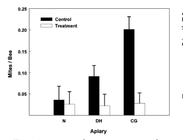 Kvalstren hölls på en låg nivå i alla behandlade samhällen där en stor del skulle kunnat klara sig helt utan ytterligare behandling medan de flesta obehandlade behövde ytterligare behandling. De obehandlade kolonierna i grupp DH och CG hade så hög nivå att omedelbar behandling hade behövts för att rädda dem. Dessutom drog de behandlade samhällena in mer honung under säsongen, ca 10 kg mer per kupa.