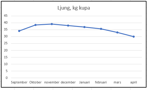Vi gjorde ett vintertest denna vinter för att utmana myten om ljunghonungens farlighet där vi utfodrade en kupa med 100% ljunghonung. Dessutom har vi mätt kupans vikt under hela vintern för att se hur mycket som faktiskt går åt och resultatet är minst sagt förvånande då det visade sig att under hela hösten ökade kupans vikt. Till och med i november-december fann bina någonting som gjorde att vi hade 4-5 kg plus sista december.