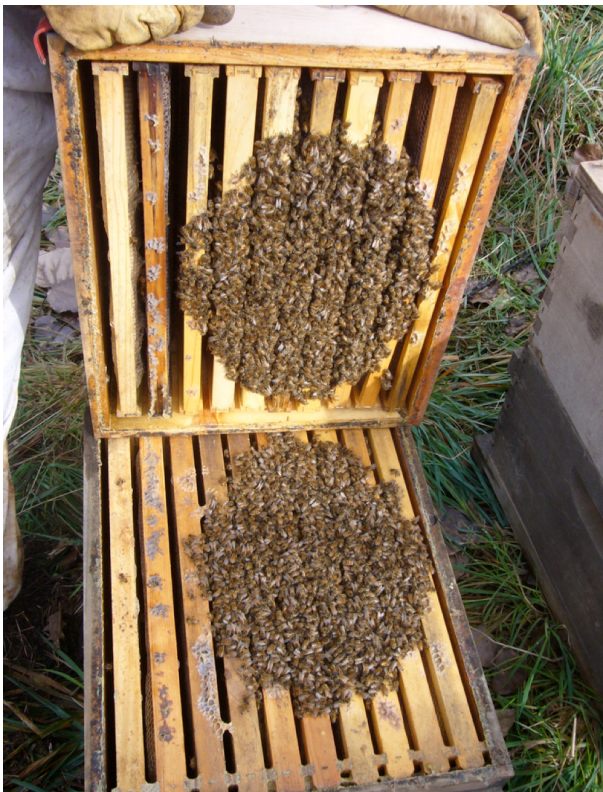 Vinterklustret, som har förlorat det sista av sina kortlivade “sommarbin”, består nu till stor del av långlivade vinterbin. Under de kalla vintermånaderna undviker bina att föda upp yngel kontinuerligt och under perioden november-februari (i södra Sverige) förekommer yngel endast sporadiskt. Under viloperioden arrangerar bina i samhället sig i ett kluster av optimal storlek och form för att spara värme och minimera deras konsumtion av honung. Bilden nedan (fig. 1) visar bin i ett tätt kluster.